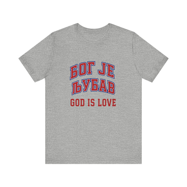 The tee is a proclamation of Orthodox truth, emphasizing divine love that purifies and transforms, rooted in historical faith.